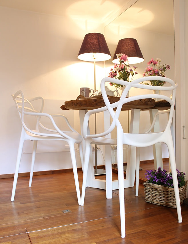 Không gian ăn uống đẹp xinh, cá tính với bộ bàn ghế có kiểu dáng cách điệu.