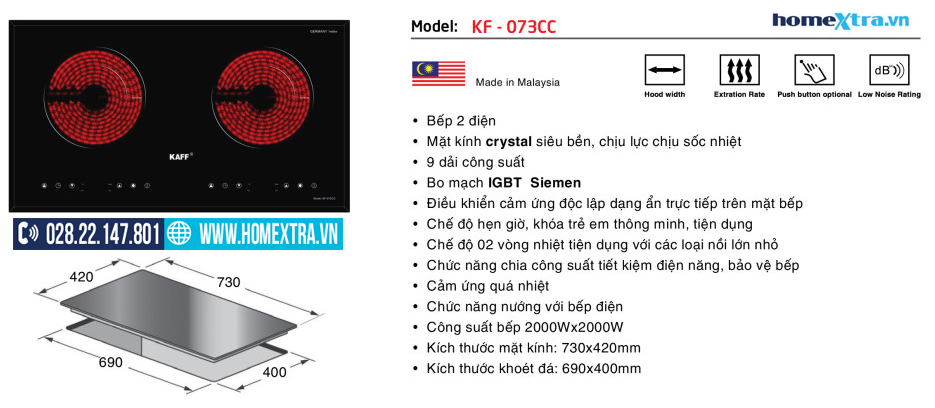 - Công suất bếp 2000W X2000W.