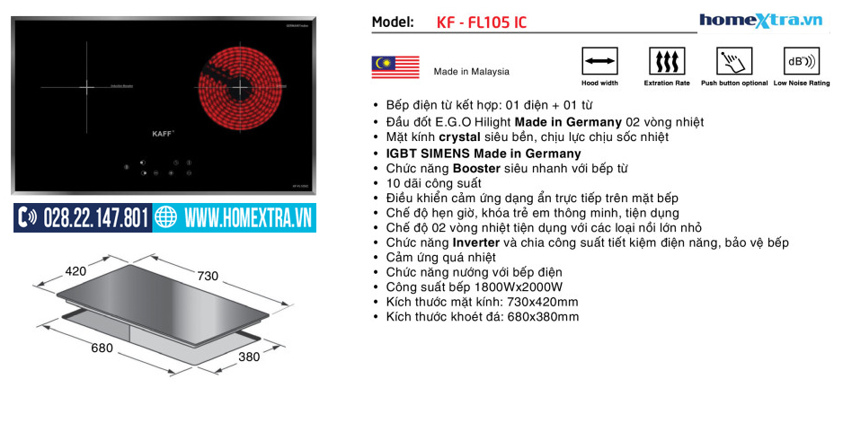 + Chức năng chia công suất tiết kiệm điện năng, bảo vệ bếp