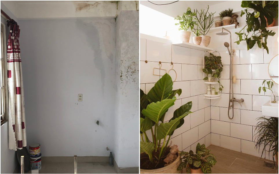 Biến góc nhà ẩm mốc cũ kĩ thành nhà tắm phong cách tropical.