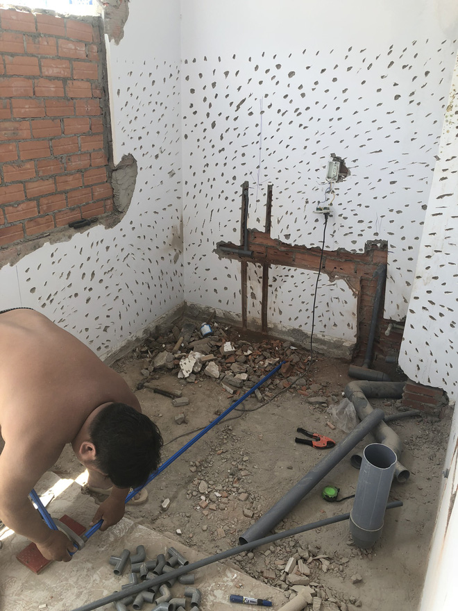 Quá trình cải tạo diễn ra nhanh chóng, mệt nhất là phần sàn và lắp đặt ống nước