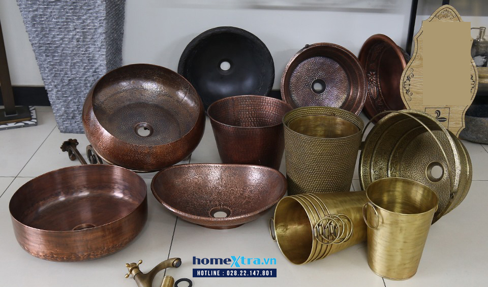 - Bồn rửa mặt, rửa tay bằng đồng phong cách mộc mạc