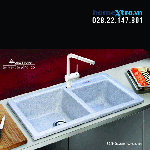 Chậu rửa chén đá Việt Mỹ được sản xuất với hơn 80% bột đá tự nhiên.