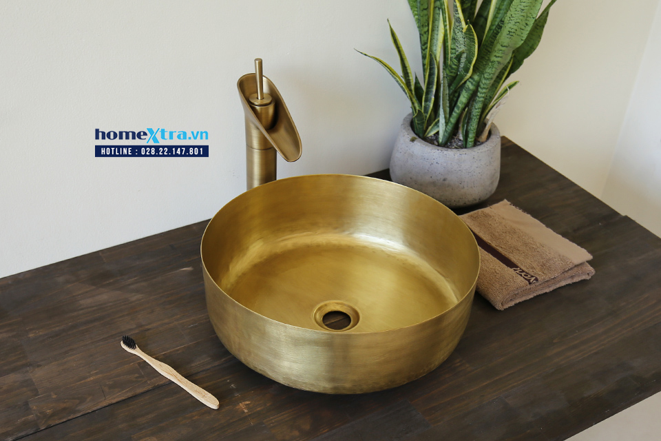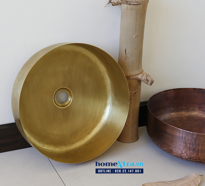 - Bồn rửa mặt, rửa tay bằng đồng phong cách mộc mạc