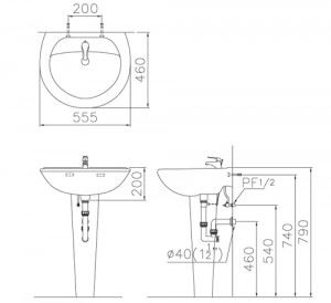 Lưu ý. – Các phụ kiện như vòi nước, bệ để, bộ xả, xiphong .. không bao gồm, các phụ kiện này được chúng tôi cung cấp riêng