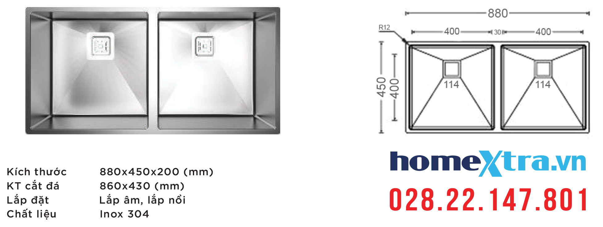 - Kích thước cắt đá 860 mm x 430 mm