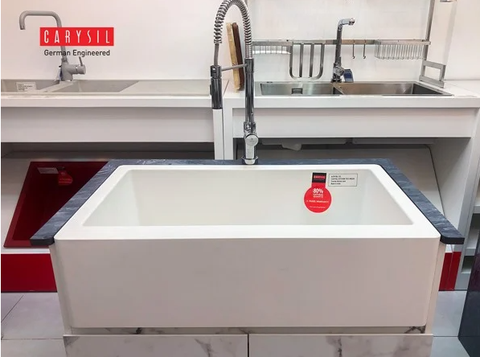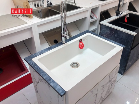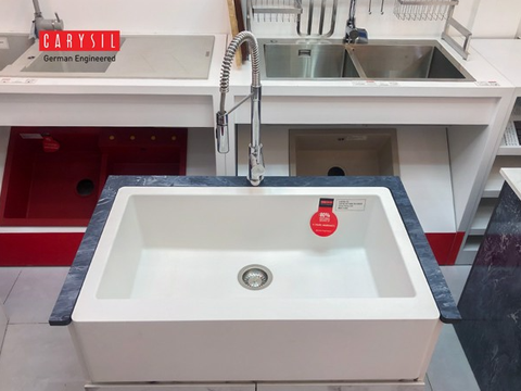 Chậu đá granite REC1 - phong cách farmhouse là một điều bất ngờ ngay với cả những chuyên gia trong lĩnh vực thiết kế nội thất hiện nay, vì khi nhắc đến Apron Sink người ta chỉ suy nghĩ đến các chậu inox304 hoặc các chậu gang, chậu sứ chứ chưa ai suy nghĩ vệ chậu đá granite. Carysil là nhà sản xuất chậu đá, đã tiên phong đưa phong cách này đến với thị trường Việt Nam từ tháng 6-2020.