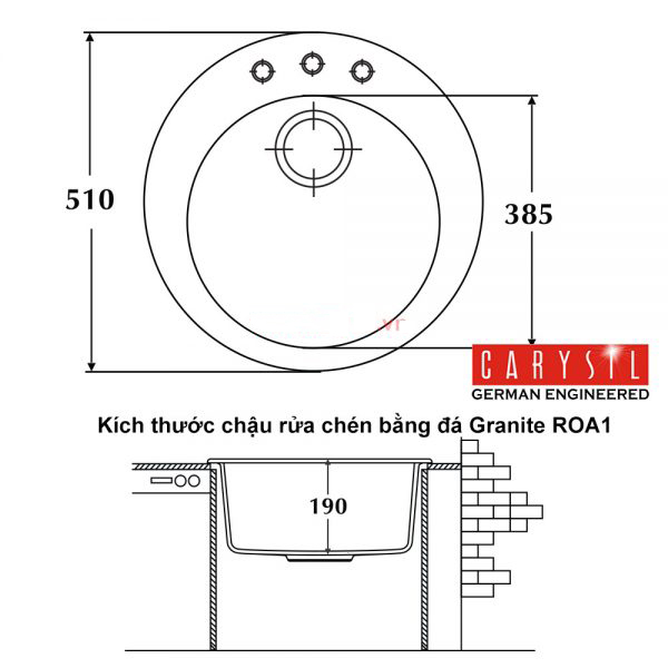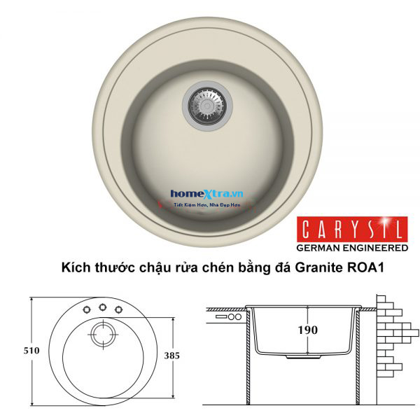 - Chậu rửa chén Carysil làm từ bột đá granite ROA1 Kích thước: