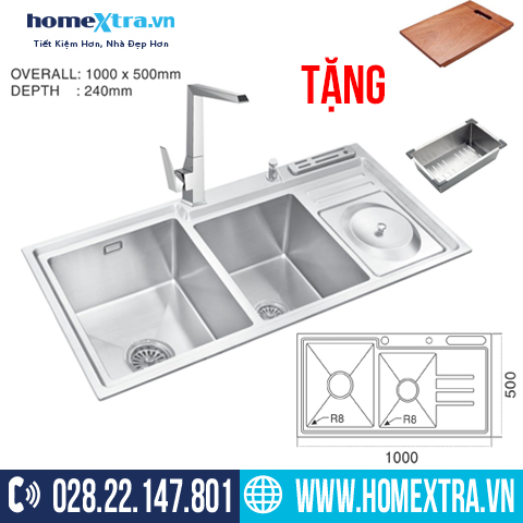 Khi mua được tặng kèm thớt và khay Inox VÀ VÒI CHÉN LẠNH