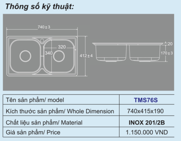 Chậu rửa inox Trường Tuyền TMS76S