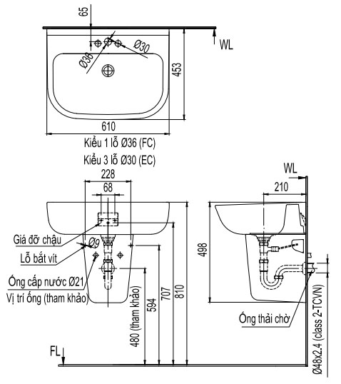 - Bao gồm: Chậu lavabo và chân chậu. Chưa bao gồm vòi xả