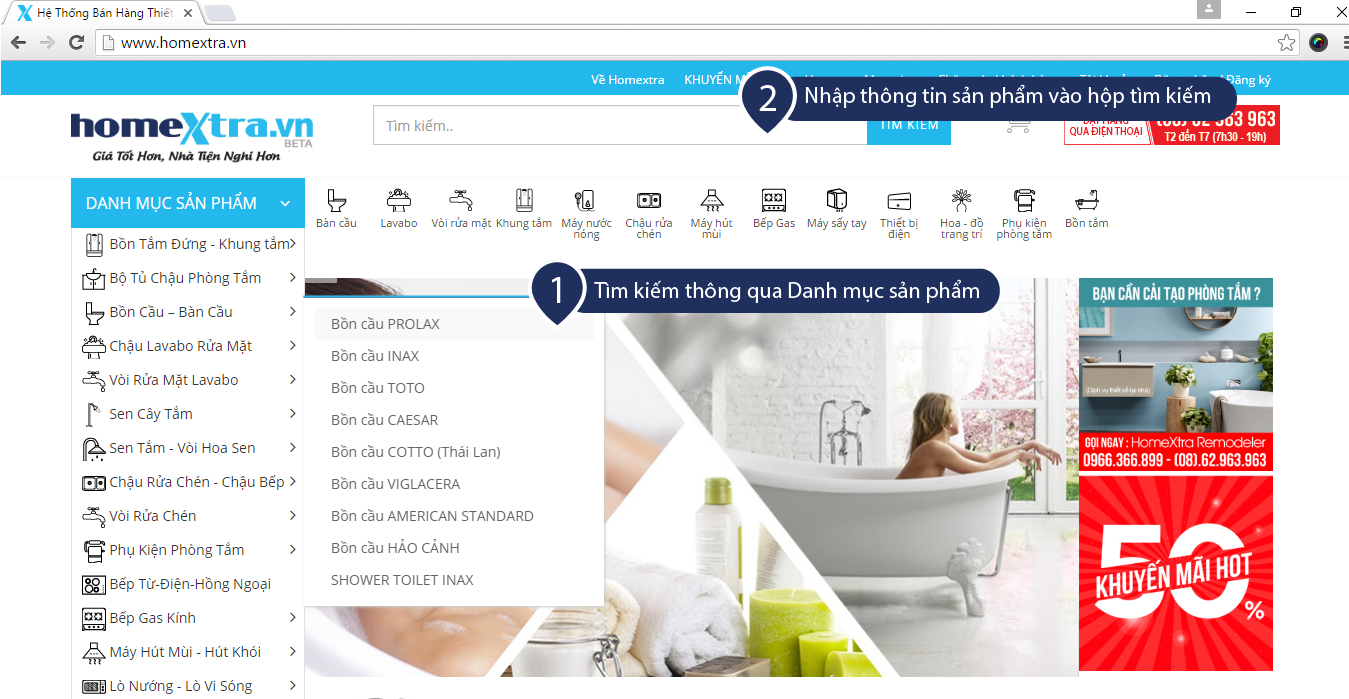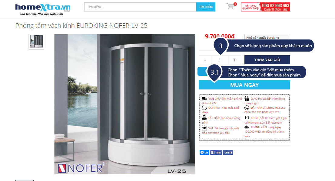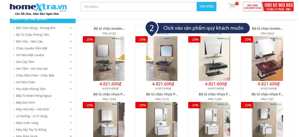 Bước 1: Quý khách lựa chọn sản phẩm có trên website (Xem hướng dẫn phía dưới cách đặt hàng trên Homextra.vn)