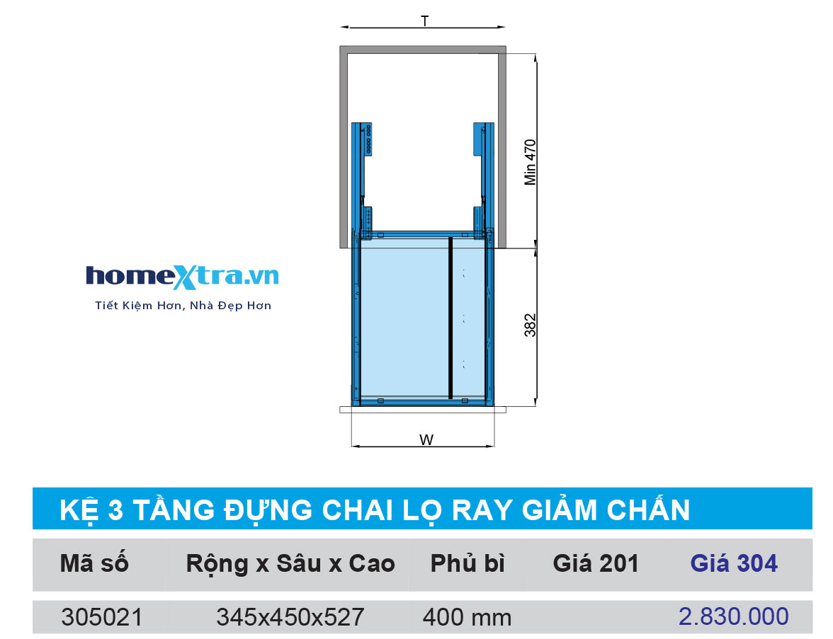Kệ 3 tầng đựng chai lọ ray giảm chấn 305021 inox 304 400mm Higold