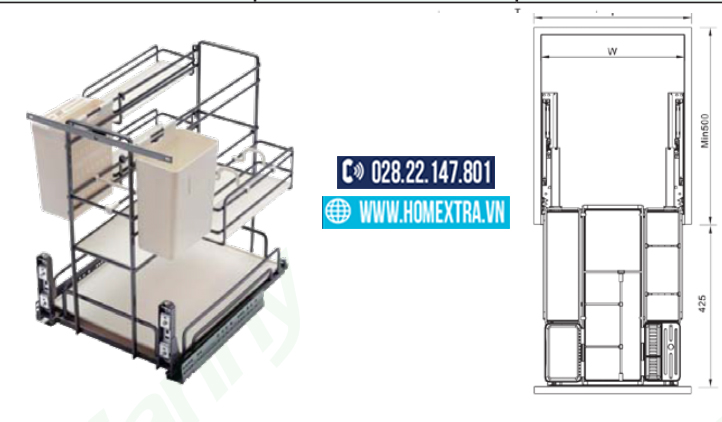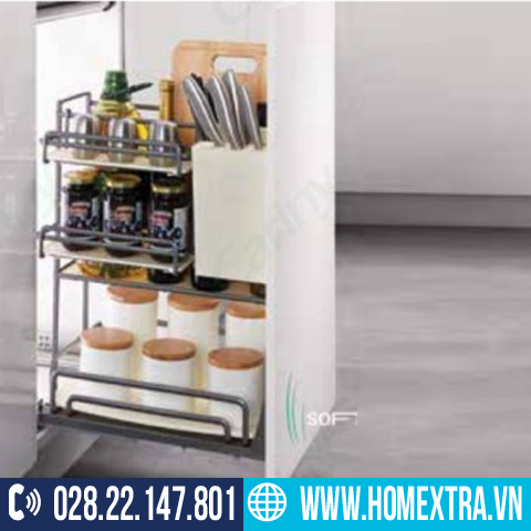 - Kệ gia vị, dao thớt đa năng, ray âm giảm chấn, lắp cho mặt cánh rộng 450 mm