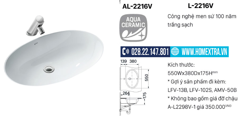Chậu âm bàn áp dụng công nghệ AQUA CERAMIC đánh bay mọi vết bẩn dễ dàng, ngăn cặn nước hình thành vết ố và giữ cho bàn cầu luôn sáng bóng
