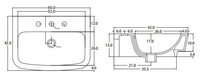 - Kích thước ngang 60cm, khoảng cách từ tường ra 42cm.