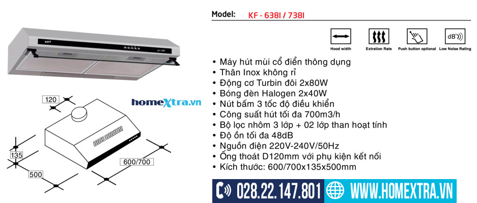 hutMáy hút mùi cổ điển Kaff KF-738I