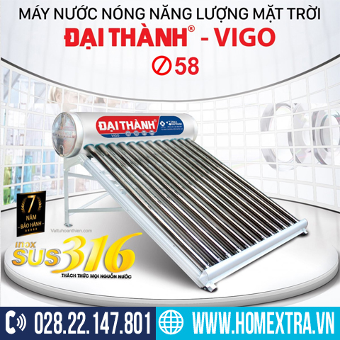 Bảng giá khuyến mãi máy nước nóng năng lượng mặt trời cao cấp Đại Thành dòng Vigo inox SUS 316 ống thu nhiệt Ø58: