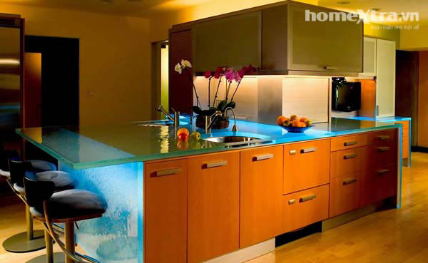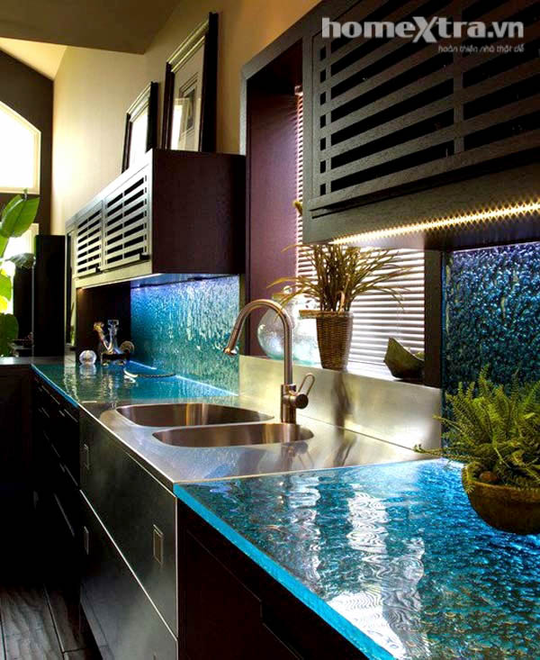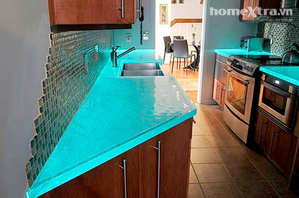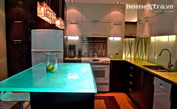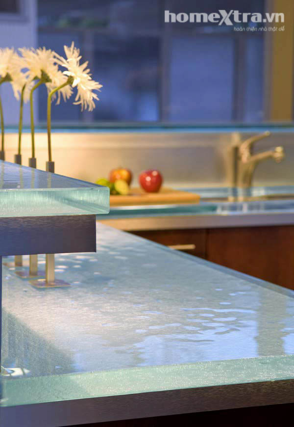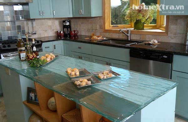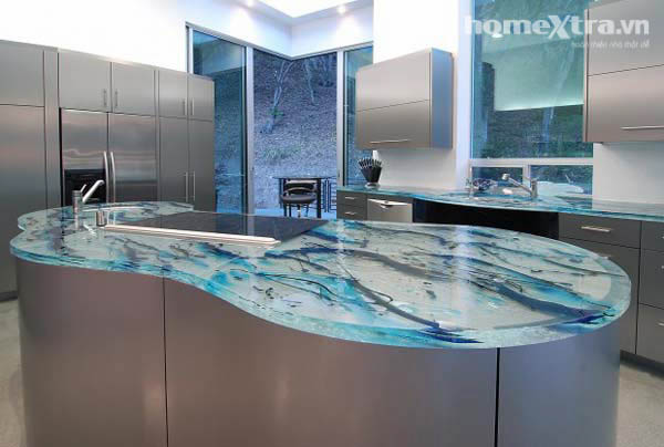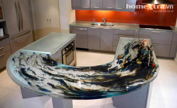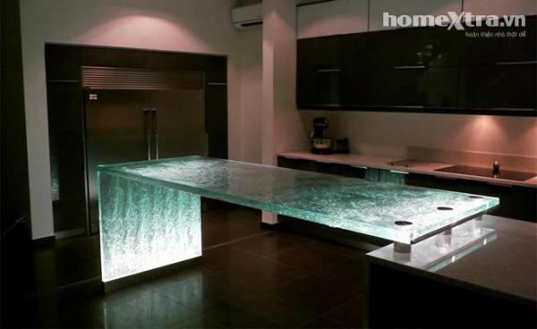 NGẤT NGÂY VỚI BÀN BẾP MẶT THỦY TINH LẠ MẮT