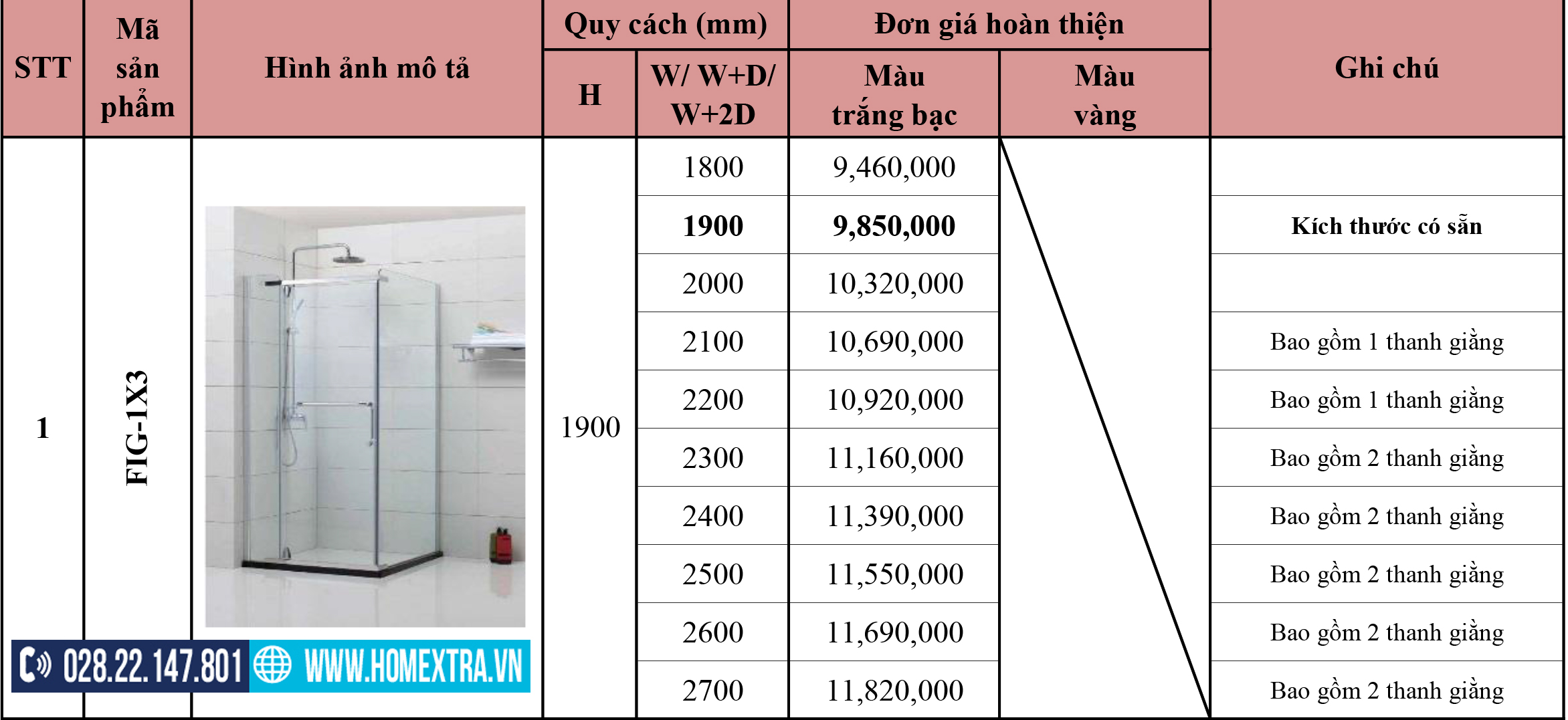 - Thiết kế thanh định hình thông minh cho phép Phòng tắm kính khít với cả những bức tường nghiêng tới 2 cm và có thể mở rộng thêm từ 2m – 4cm.