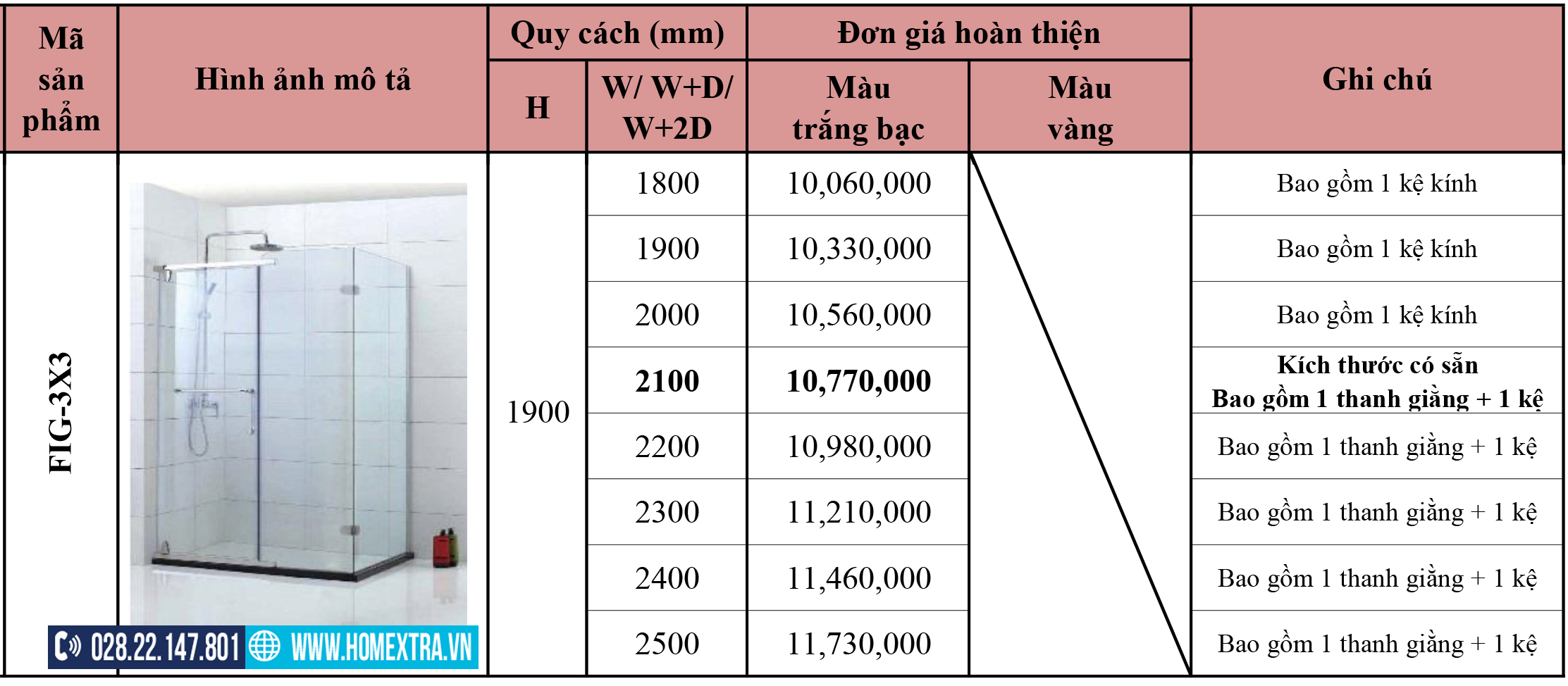- Thiết kế thanh định hình thông minh cho phép Phòng tắm kính khít với cả những bức tường nghiêng tới 2 cm và có thể mở rộng thêm từ 2m – 4cm.