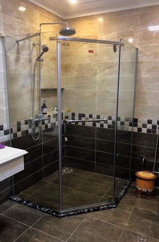 - Thiết kế thanh định hình thông minh cho phép Phòng tắm kính khít với cả những bức tường nghiêng tới 2 cm và có thể mở rộng thêm từ 2m – 4cm.