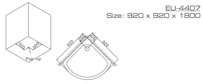- Kiểu dáng góc hình cánh quạt của cabin tắm vách kính Euroking EU-4407 tạo phong cách độc đáo và tiết kiệm không gian cho phòng tắm gia đình bạn. Với kích thước 920x920x2150mm, đây là sản phẩm vách tắm kính có kích thước trung bình phù hợp lắp đặt với mọi không gian phòng tắm vừa hoặc rộng.