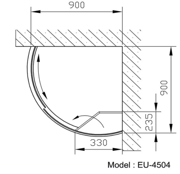 - Cửa mở: dạng lùa (gạt) bằng kính với tay cầm bằng nhựa ABS tiện lợi cho người dùng mà không làm gia tăng thêm diện tích phòng.