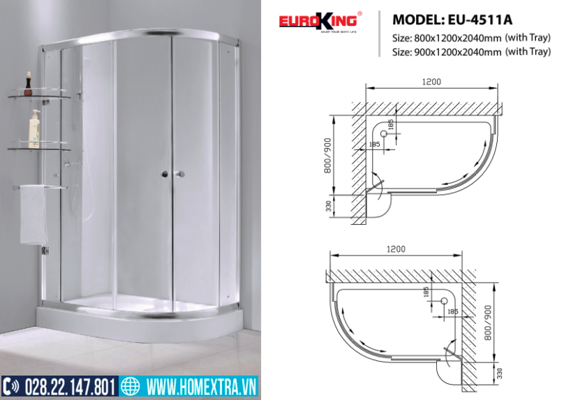 - Euroking EU-4511A Kích thước (RxDxC): 800x1200x2040mm và 900x1200x2040mm (đế Tray)