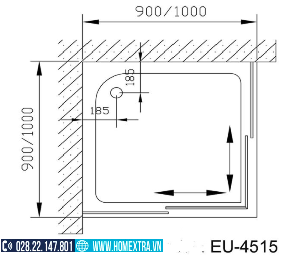 - Dạng thiết kế phòng tắm vách kính vuông vắn với kiểu dáng nhỏ gọn, tiện dụng. Có 2 dạng kích thước tuỳ theo lựa chọn của khách hàng: 900x900x2040mm và 1000x1000x2040mm.