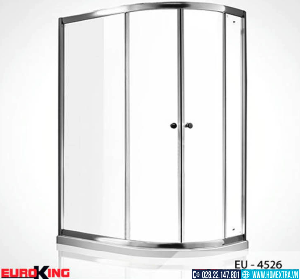 - Phòng tắm vách kính EuroKing EU – 4526A với thiết kế đặc biệt, như một nửa giọt nước bị chẻ đôi và được định hình lại bằng bộ khung hợp kim nhôm sáng bóng. Bao quanh là lớp kính cường lực trong suốt, mở rộng tầm nhìn trong mọi không gian.