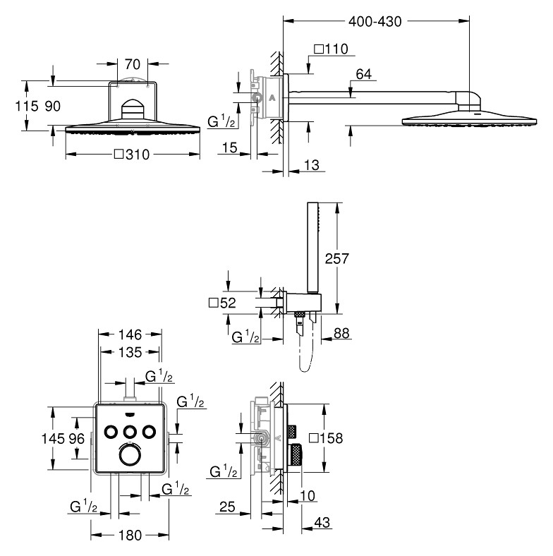 - Bộ sen cây Grohe âm tường SmartControl vuông đến từ thương hiệu thiết bị vệ sinh Grohe