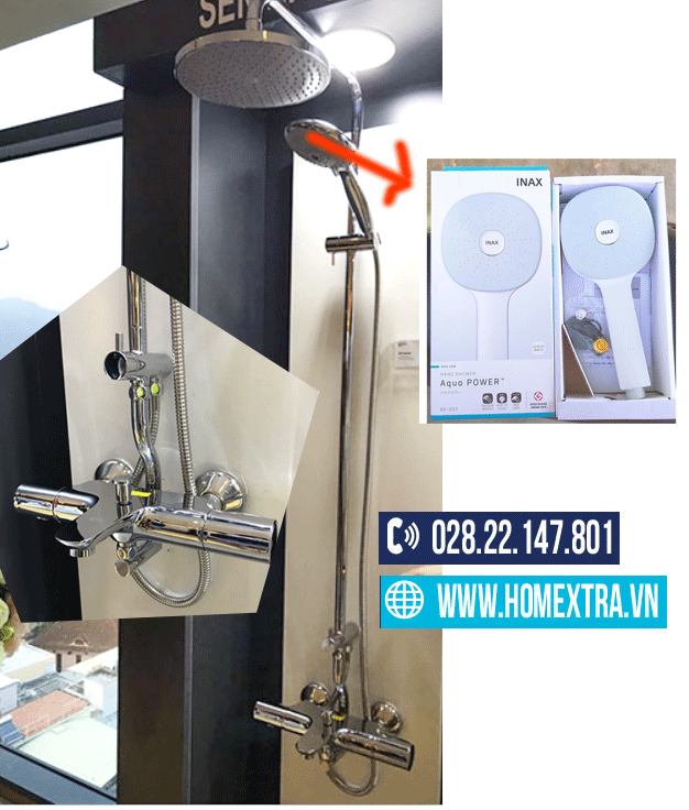 - Sen tắm nóng lạnh sử dụng tay sen tăng áp Aqua POWER