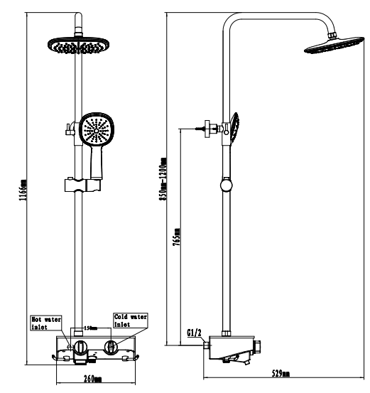 - Áp lực nước: 0.05MPa ~ 0.75MPa