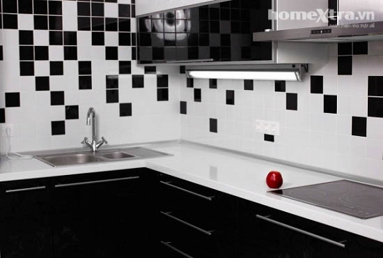 Bên cạnh việc lựa chọn săc đen – trắng cho đồ nội thất bạn cũng có thể lựa chọn giải pháp sử dụng chúng cho sàn bếp.