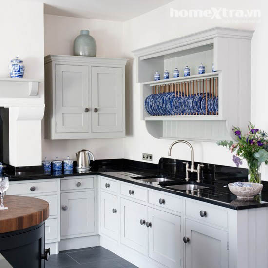 TRANG TRÍ BẾP VỚI HAI GAM MÀU TRẮNG ĐEN KINH ĐIỂN