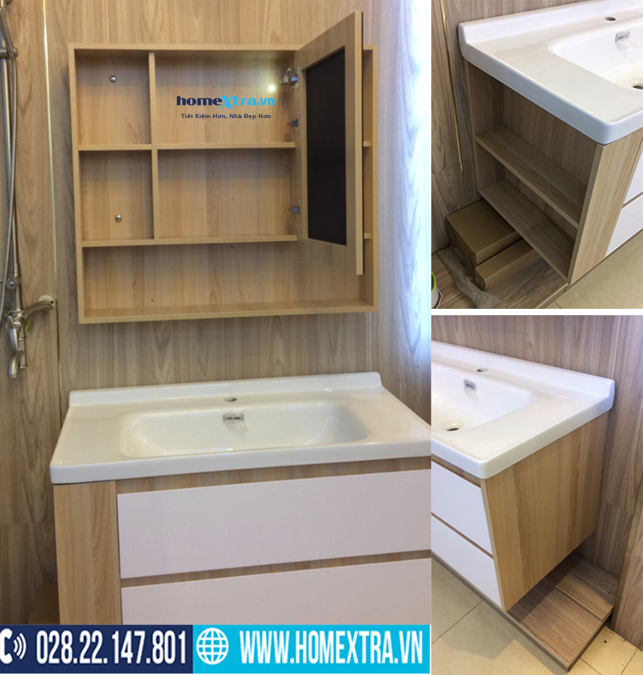 - Bộ tủ gương bao gồm phần gương và phần tủ lavabo rửa mặt.