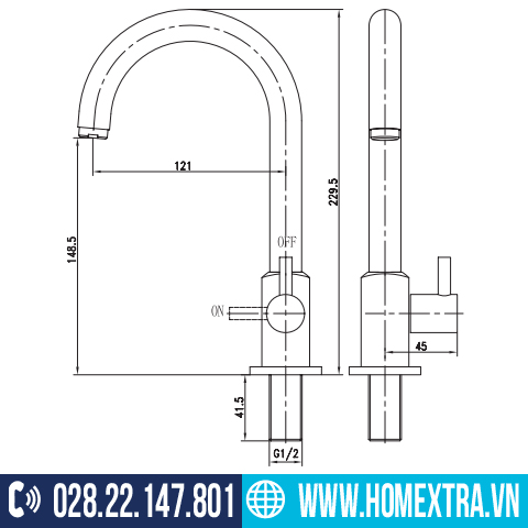 - Thân vòi làm bằng hợp kim đồng thau cao cấp H65