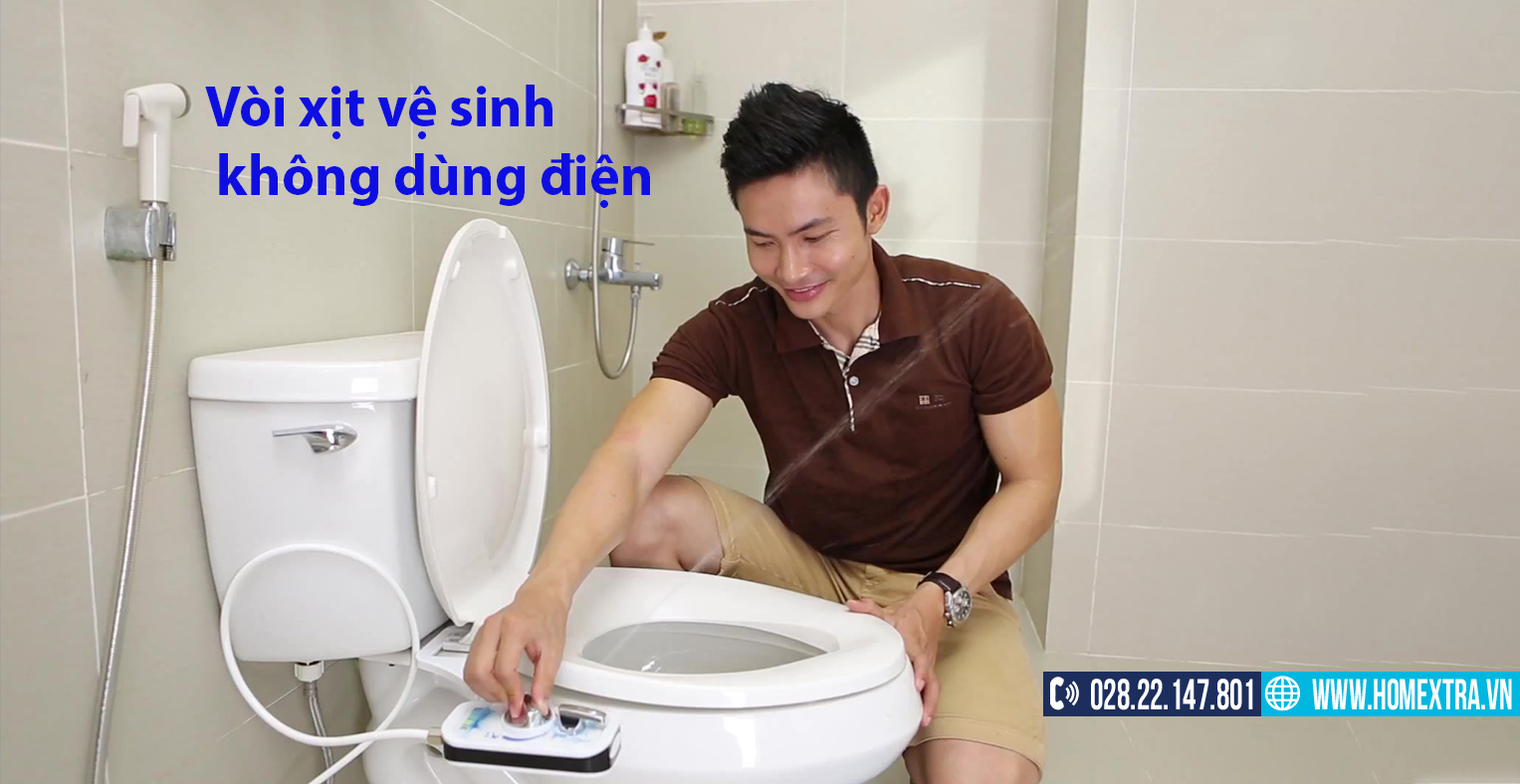 Vòi xịt vệ sinh không dùng điện được gắn cố định với hệ thống ống nước gắn vào phía trên nắp bồn cầu, tiện lợi khi đi vệ sinh.